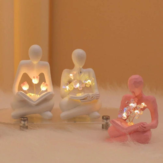Desktop Thinker Sculpture Ornament Abstract Figure Tulip Book Lamp