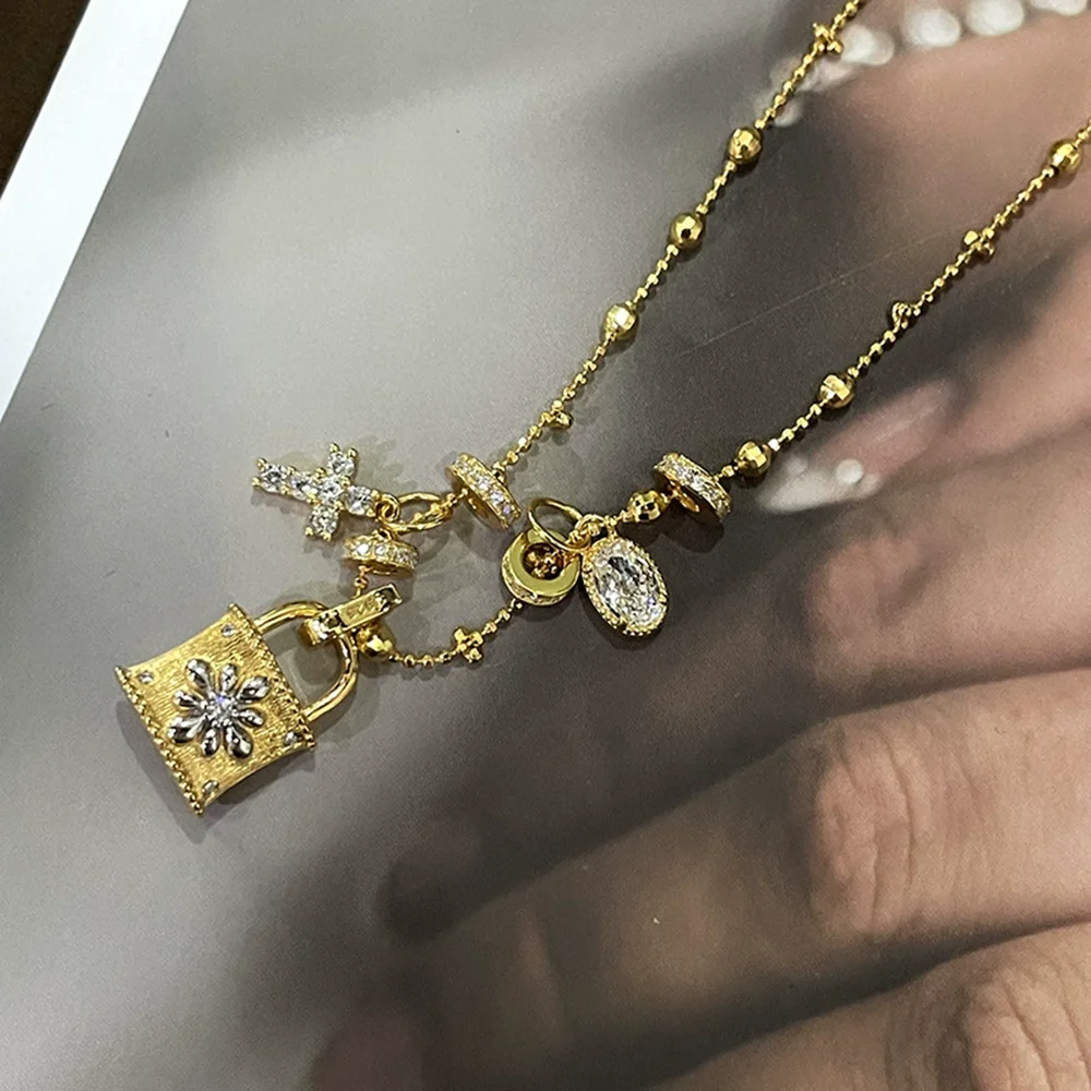 Add a touch of charm and elegance to your everyday look with this adorable lock pendant necklace. This delightful piece features an intricately designed lock charm that symbolizes security, trust, and meaningful connections. Crafted with attention to detail, the pendant hangs gracefully from a quality chain, making it the perfect accessory for layering or wearing solo. Whether you're drawn to its whimsical aesthetic or appreciate its symbolic meaning, this necklace serves as a conversation starter and a personal statement. Ideal for gifting to someone special or treating yourself, this cute lock pendant combines playful design with wearable sophistication that complements any style.