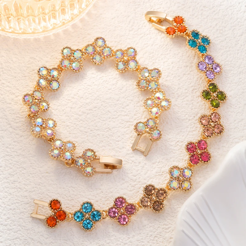 Bring luck to your style with this Four Leaf Clover Hand Bracelet, a charming accessory that adds a touch of fortune to any outfit.