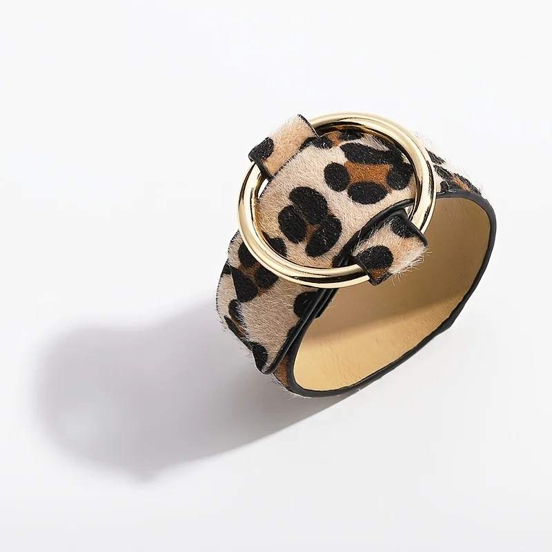 Stunning leopard-print leather bracelet that adds instant style to any outfit. Perfect for fashion-forward individuals who want to make a bold statement with timeless elegance.
