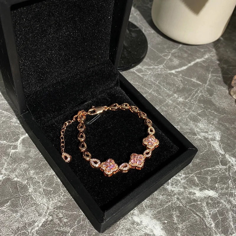 A delicate four-petal flower bracelet that brings effortless elegance to any wrist. Perfect for everyday wear or as a thoughtful gift.