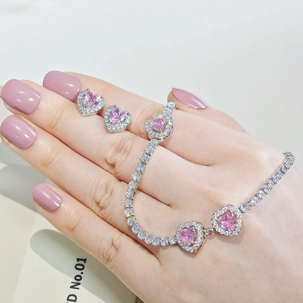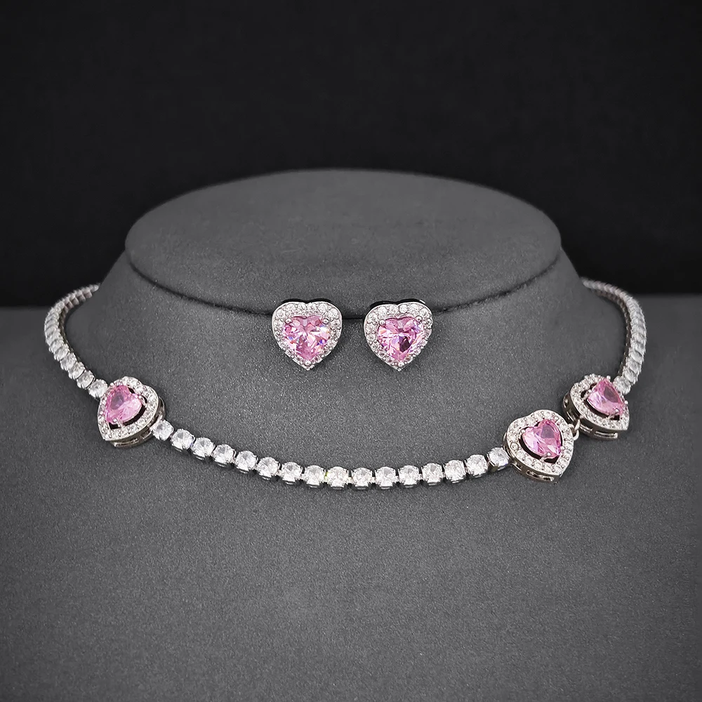 Pink heart necklace set that adds a touch of romance to any outfit. Perfect for gifting or treating yourself to timeless elegance.