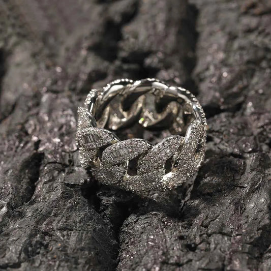 Cuban Link Rings Iced Out Baguettes Ring Men Cubic Zircon